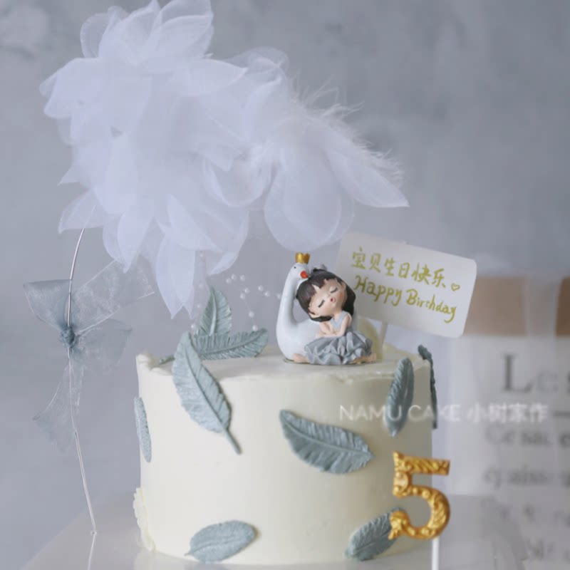 Valentine's Day Little Girl Cake Decoration Hem Swan Sleeping Pose Princess Send Girl Cake Decoration Plug-in Plugin