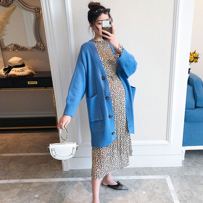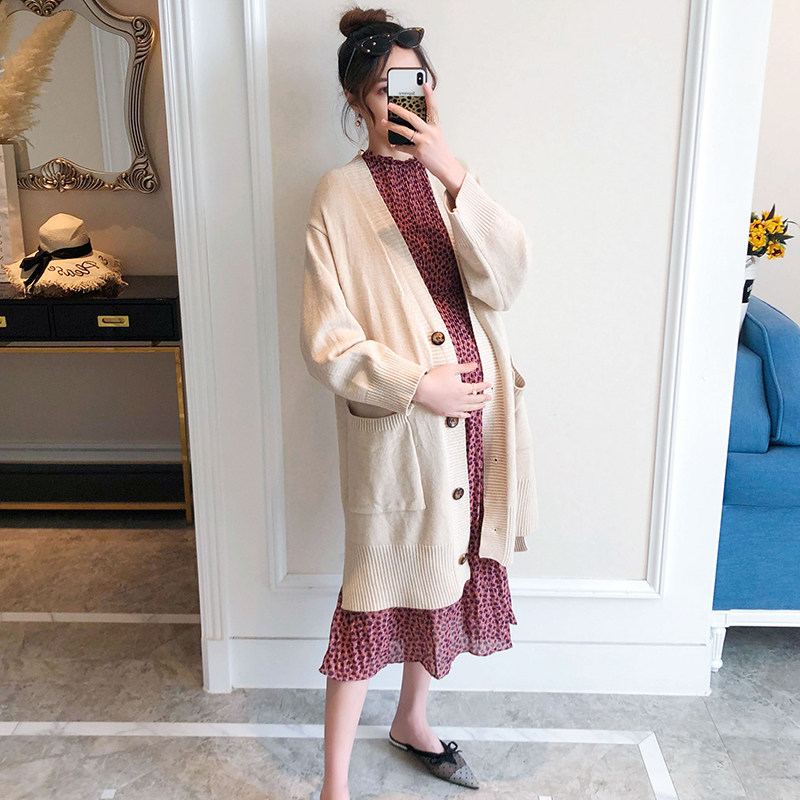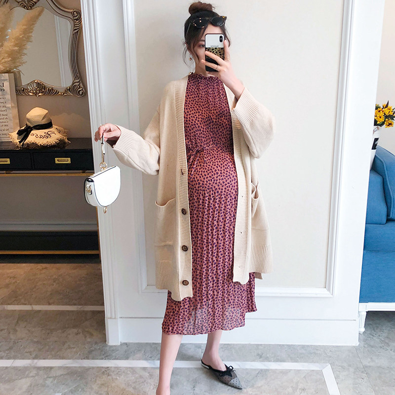 Pregnant women Spring suit set tide mom fashion spring and autumn out knitted cardigan dress loose two-piece set