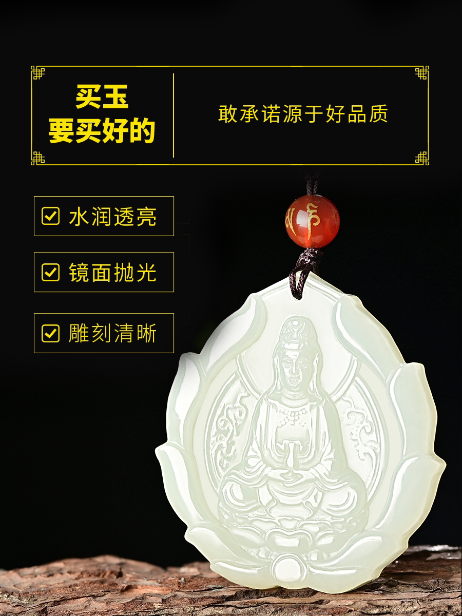 Quality and Tamyu Lotus Guanyin pendant sitting lotus Guanyin jade Jade Card Necklace male Yupei pendant big belly Millver