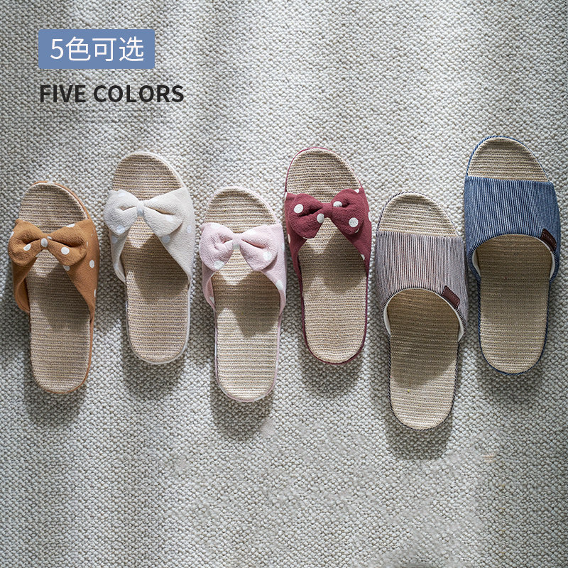 Yuangang Four Seasons deodorant antibacterial linen slippers female summer indoor silent home non-slip couple male household cloth
