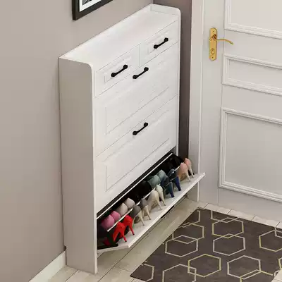 Door cabinet narrow entrance shoe rack storage cabinet double-layer door anti-bucket shoe cabinet dump 24cm thick three-layer European modern
