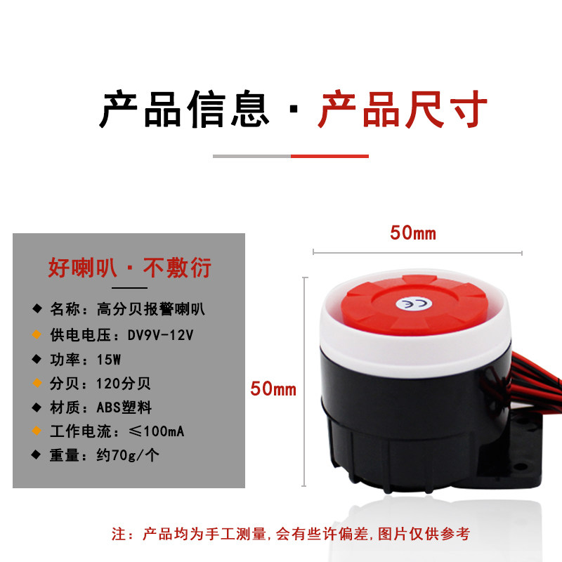 Burglar alarm horn siren high decibel alarm no. 9-12V universal alarm horn alarm red small alarm