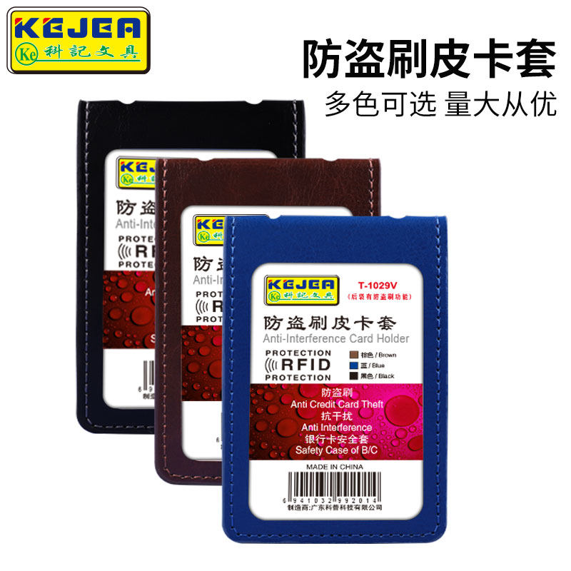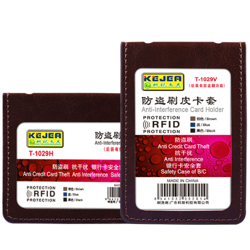 Keji bus card protective cover anti-theft brush genuine leather badge card set document set lanyard custom badge access control factory plate