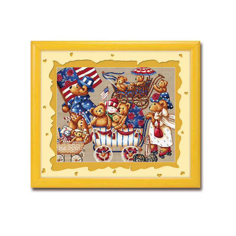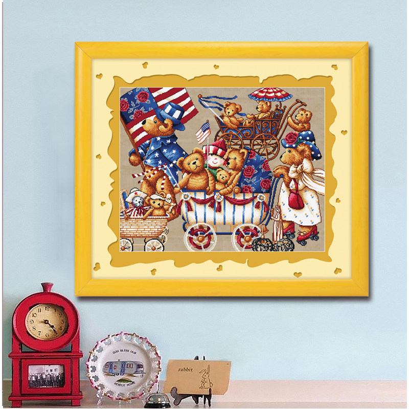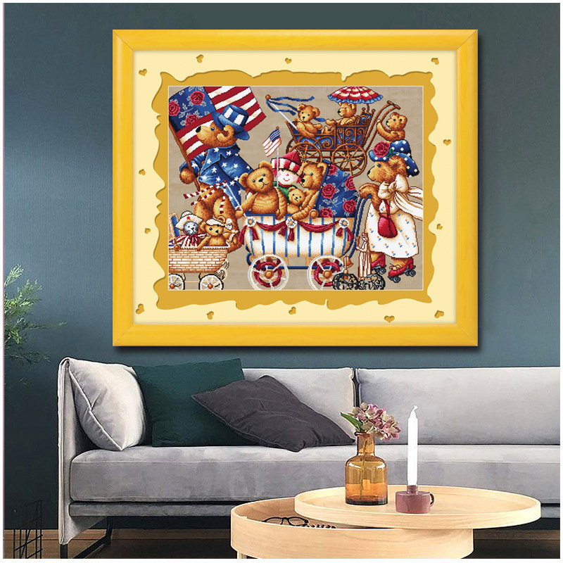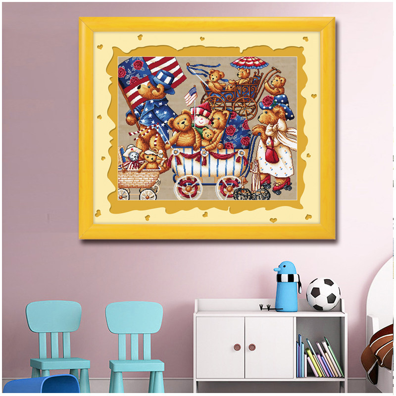 ABV pure cotton precision printing cross stitch 2020 new products cartoon living room bedroom children's room bear family