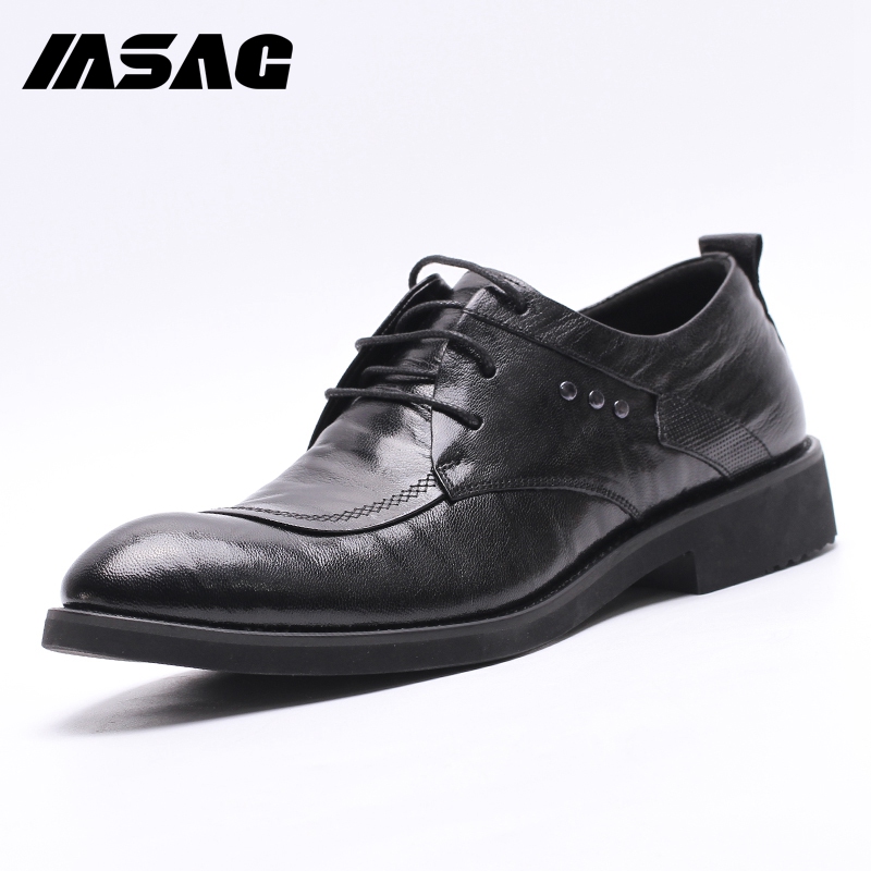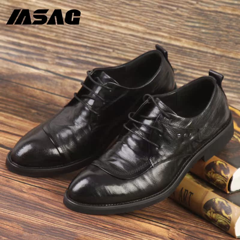 Leather shoes men's Korean style casual shoes lace-up round toe men's genuine leather British business shoes inner heightening men's shoes Derby shoes