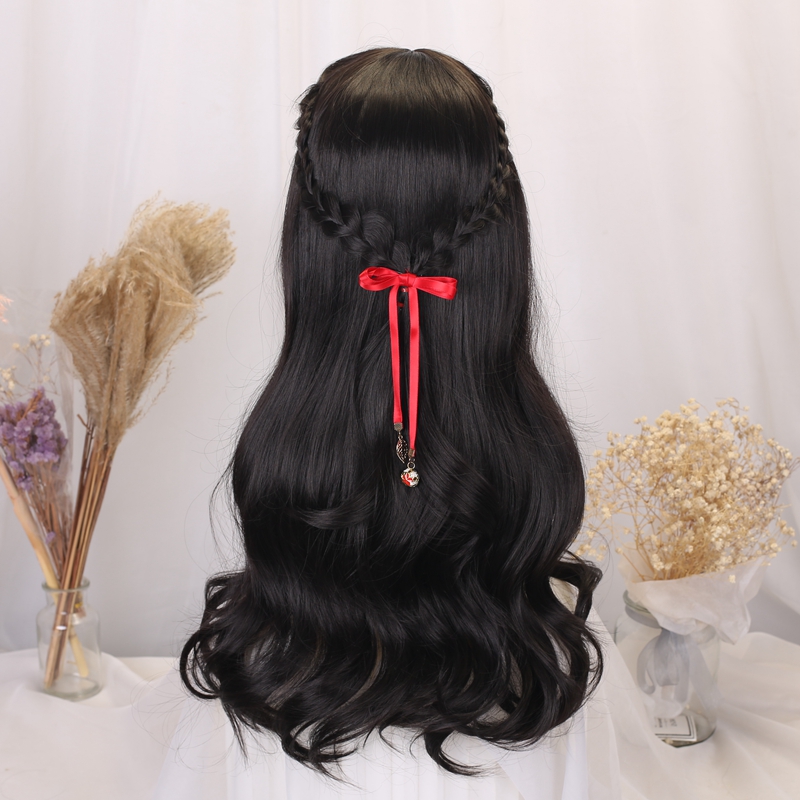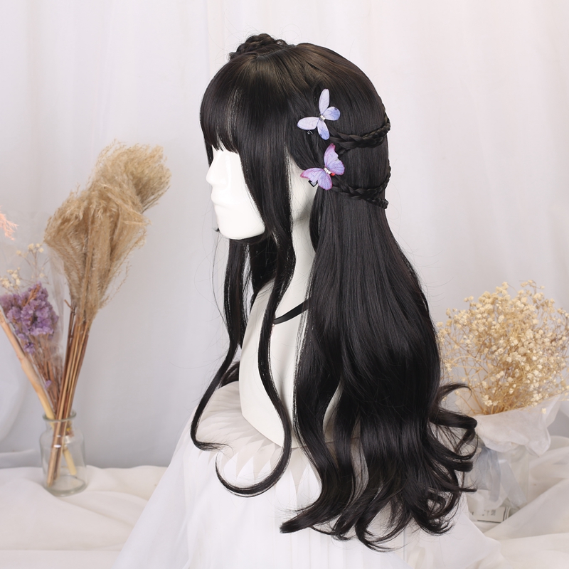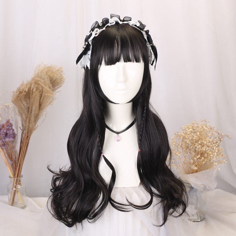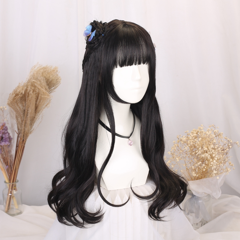 Real hair 3D air bangs princess Lolita natural full headgear British net red girl wig female wave curl set
