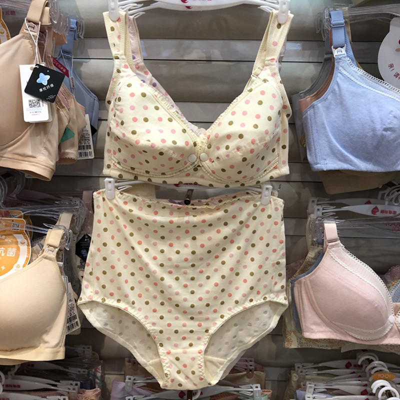 Pregnancy color cotton pregnant women nursing bra panties set thin front open button feeding underwear YYN195234-1