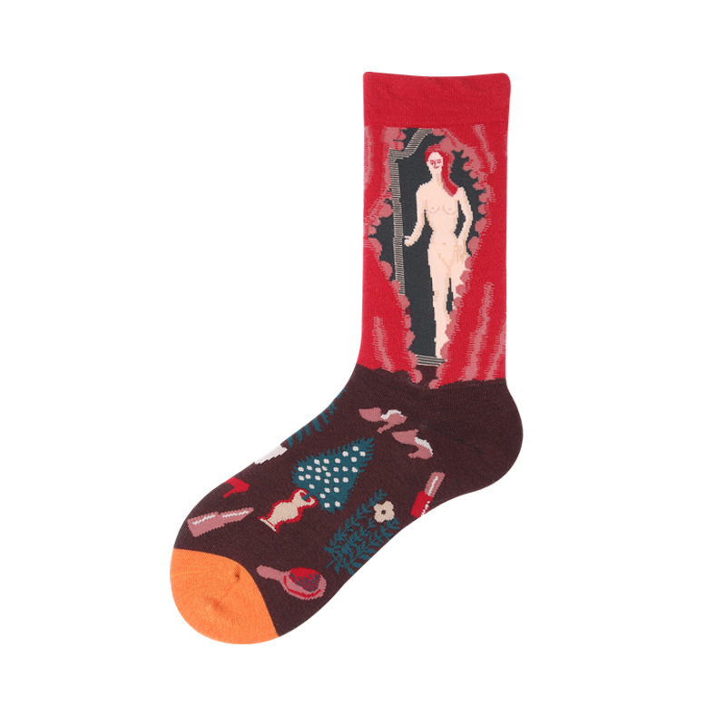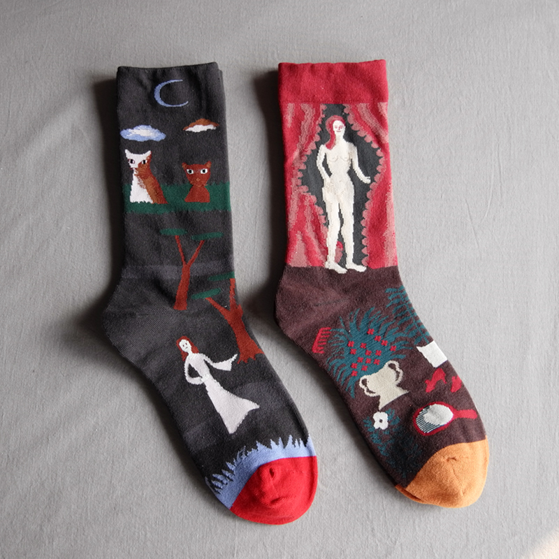 French romantic art trendy socks, mid-high tube couple socks, street INS style skateboard socks, sweat-absorbing sports high-waist socks