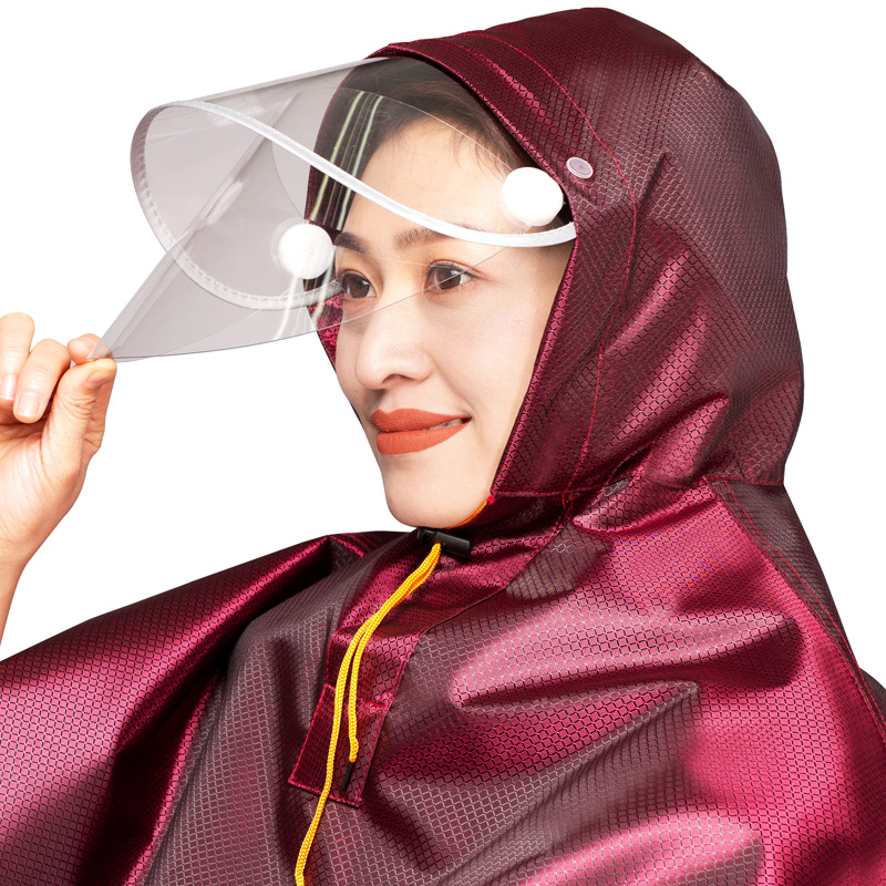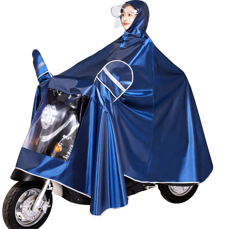 Electric motorcycle raincoat long helmet face shield single man and woman plus thick battery bike fashion poncho
