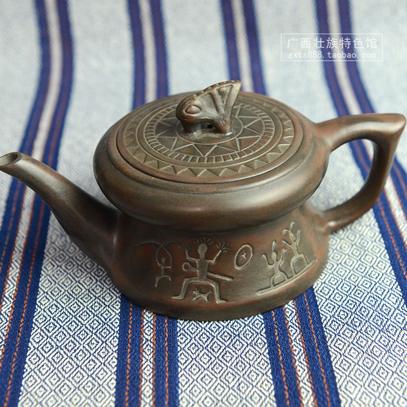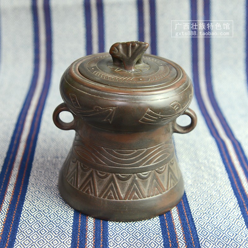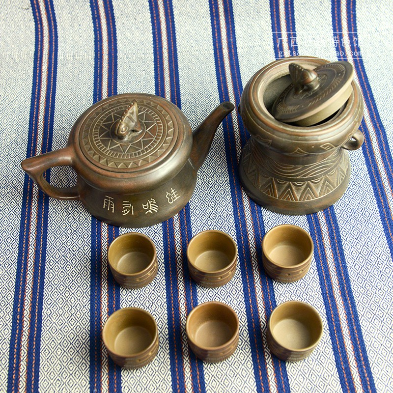 Guangxi creative business gifts Zhuang copper drum handmade pottery ethnic characteristics tea set 8 pieces set gift box packaging
