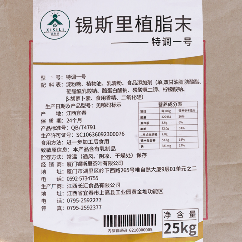 Sislite milk fat coffee mate fragrant breast - flavored milk tea shop with raw material 25KG