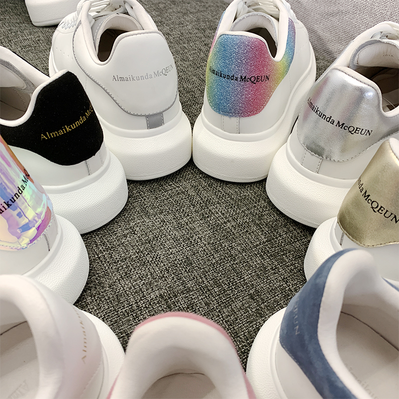 McQunda small white shoes in 2021 blast thick sole leisure leather increased Han plate plate shoes