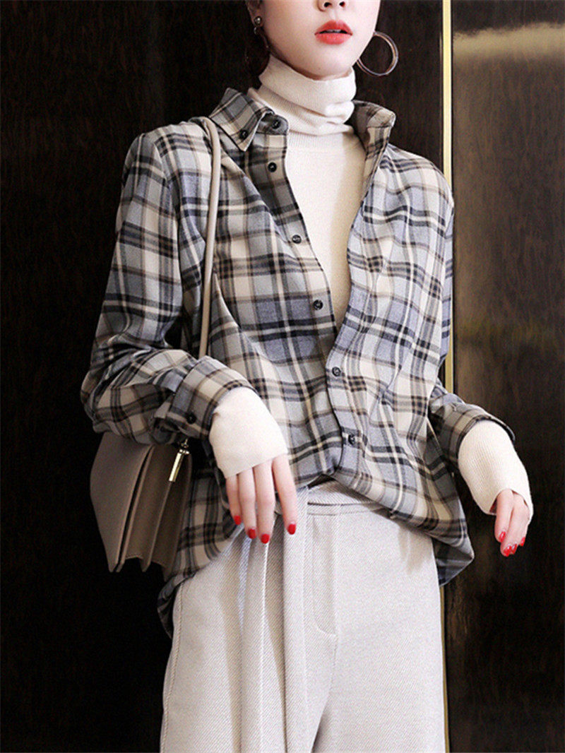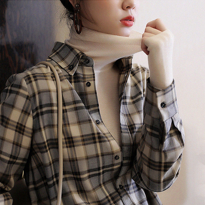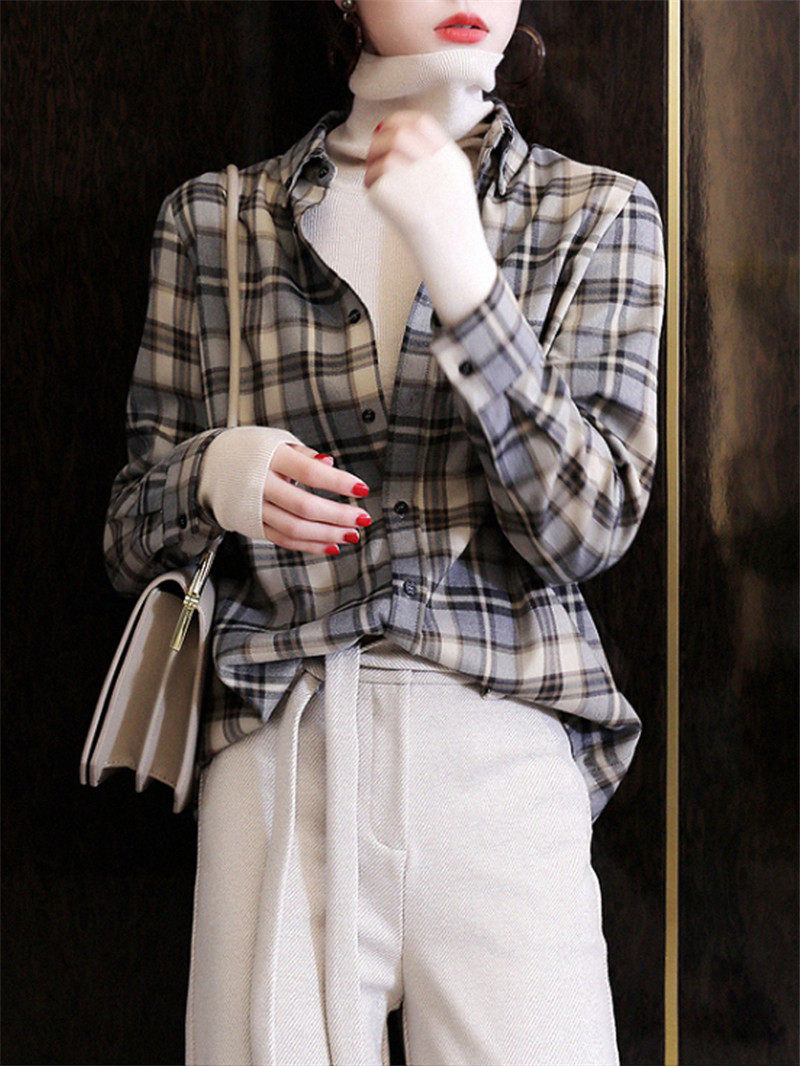 Shirt Woman 2022 Spring new Inn Wind 100 Lapped Foreign Pie Plaid Shirt Design Sense Long Sleeve Net Red Blouse