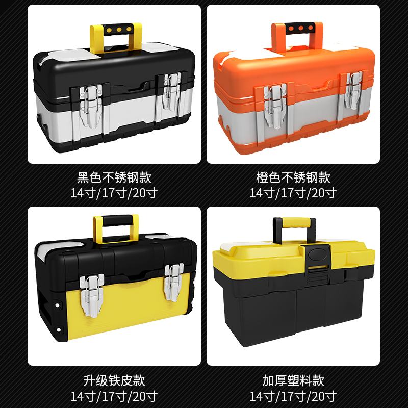 Plastic 12.5 inch toolbox This model has no giveaway Plastic 12.5 inch toolbox (sent storage parts box) (recommended by old customers) 14 inch thickened plastic toolbox (sent to storage parts box) 17 inch thickened plastic toolbox (sent to storage parts box) 20 inch thickened plastic toolbox (to send storage parts box) (new recommended) 14 inch new material reinforcement (new recommended) 18 inch new material reinforcement (new recommended) 20 inch new material reinforcement upgrade (tin) 14 inch yellow (to send storage parts box) upgrade ( Tin model) 17 inch yellow (send storage parts box) Upgrade (tin model) 20 inch yellow (send storage parts box) Strengthen 14 inches (send storage parts box) Strengthen 17 inches (send storage parts box Strengthen 20 inches (send storage parts box) Upgrade 14 inch orange (send storage parts box) Upgrade 17 inch orange (send storage parts box) Upgrade 20 inch orange (send storage parts box) 17 inch enhanced folding toolbox (send storage parts box)