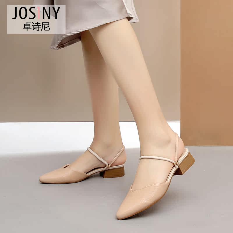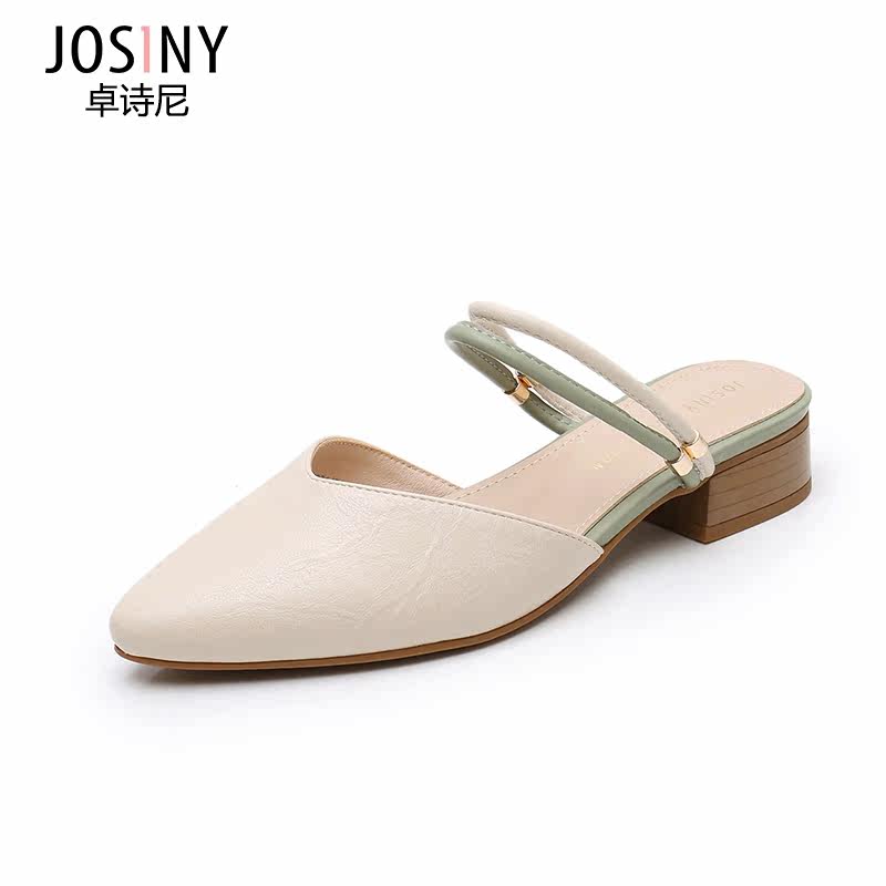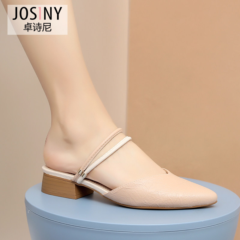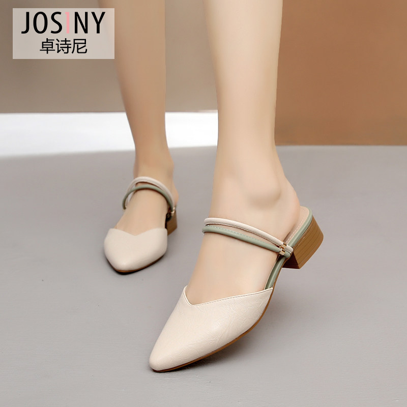 Zhuoshini 2021 spring and summer new pointed sweet fairy Muller drag wild middle heel two wear casual net red slippers