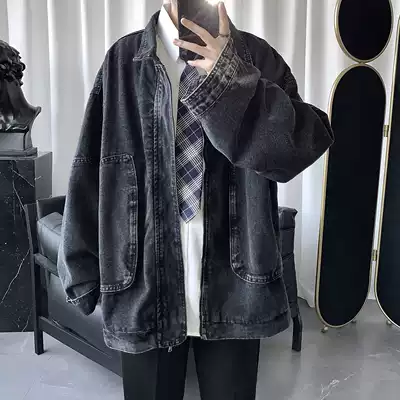 Men's autumn jacket denim jacket men's spring and autumn Korean version of the trend loose ins Hong Kong wind Joker autumn winter jacket