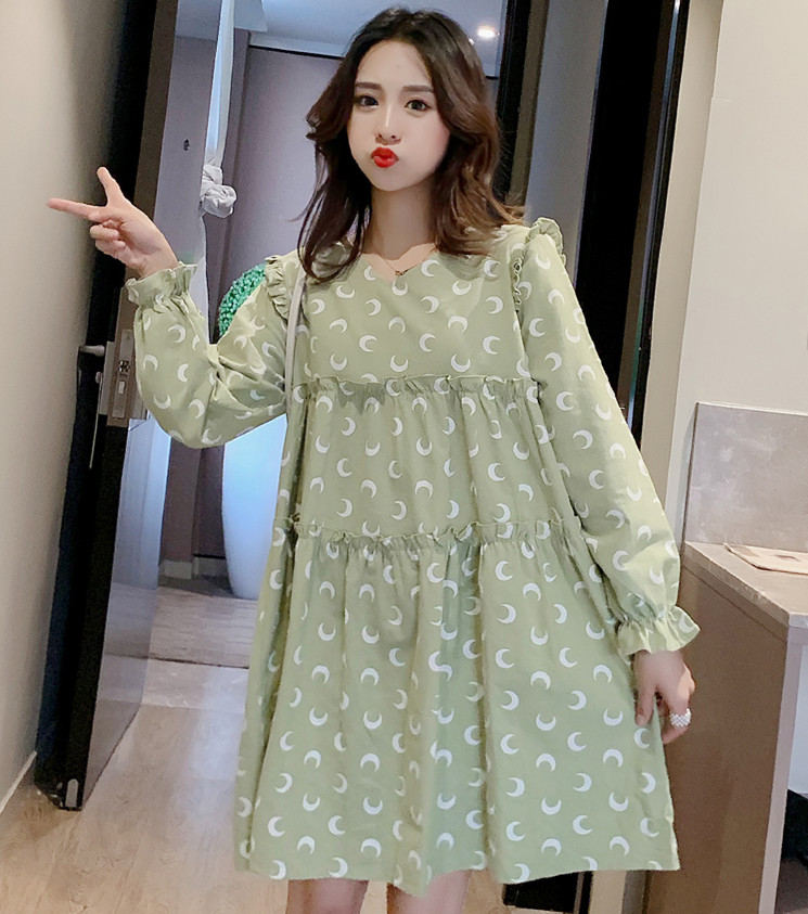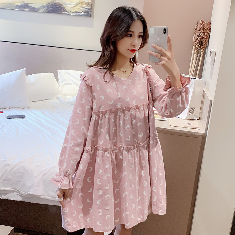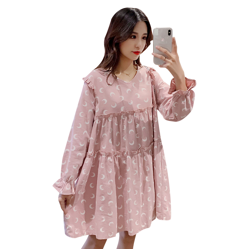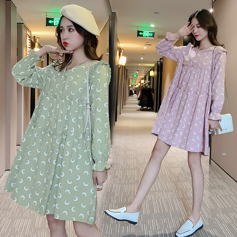Western style maternity dress spring long-sleeved maternity dress top mid-length loose Korean version spring and autumn doll skirt tide mom