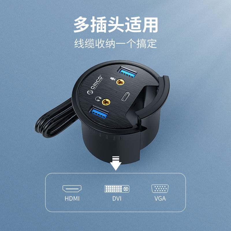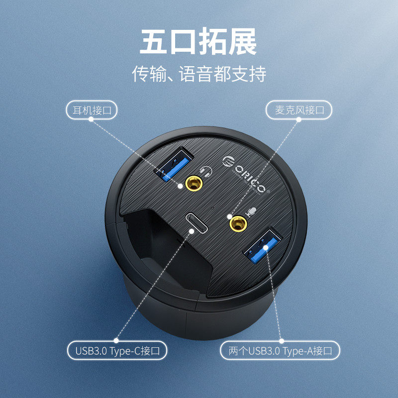 Orico Oruico table hole type USB3 0 extension cord typec adapter desktop laptop converter multi-interface extension dock with audio converter hub extension cord