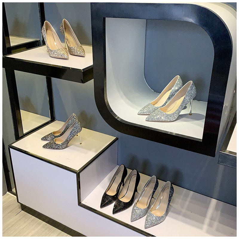High-heeled shoes women's stiletto 2022 summer and autumn new pointed toe temperament celebrity bride silver Xiuhe wedding shoes