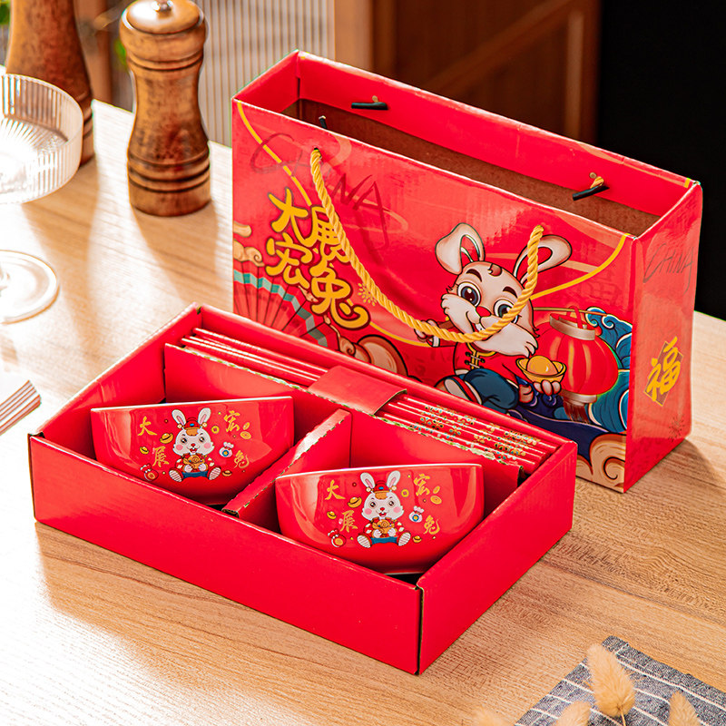 Dazhanhong rabbit bowl 2 bowls 2 (red chopsticks) gift box Dazhanhong rabbit bowl 4 bowls 4 (red chopsticks) gift box Dazhanhong rabbit bowl 6 bowls 6 (red chopsticks) gift box Fu character bowl 2 bowls 2 (red chopsticks) gift box Pretend to be lucky