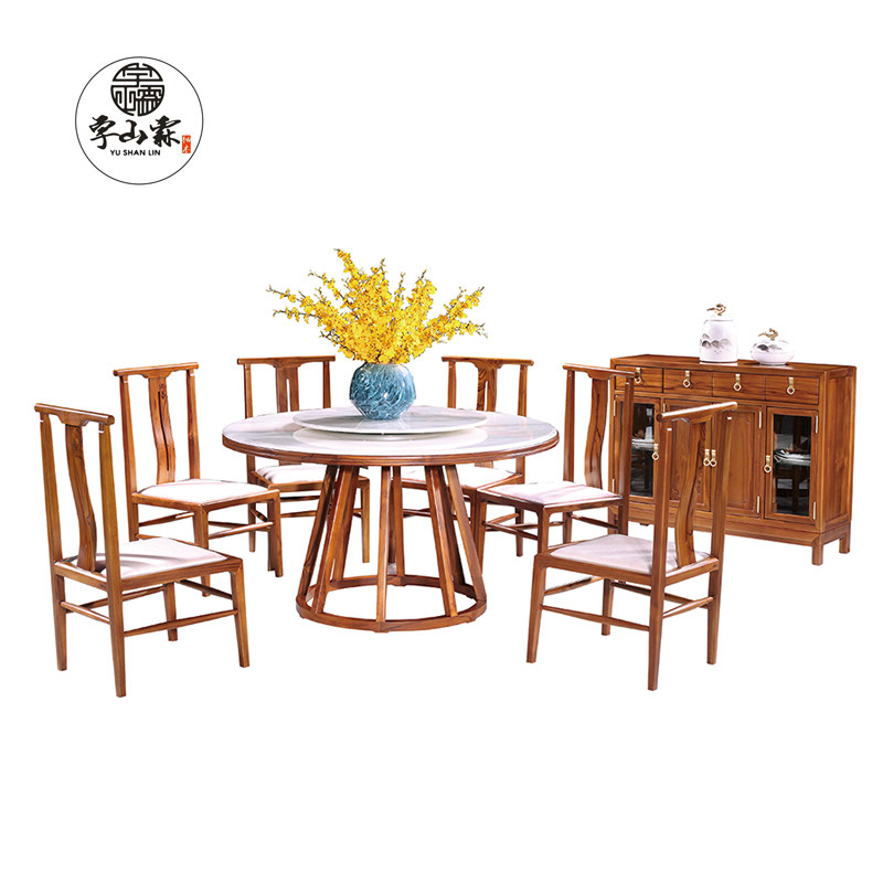 Woo Shan Lin Teak Teak Wood New Chinese Style Chandy Dining Table Dining Chair Marble Round Table With Turntable CH-T10J-A