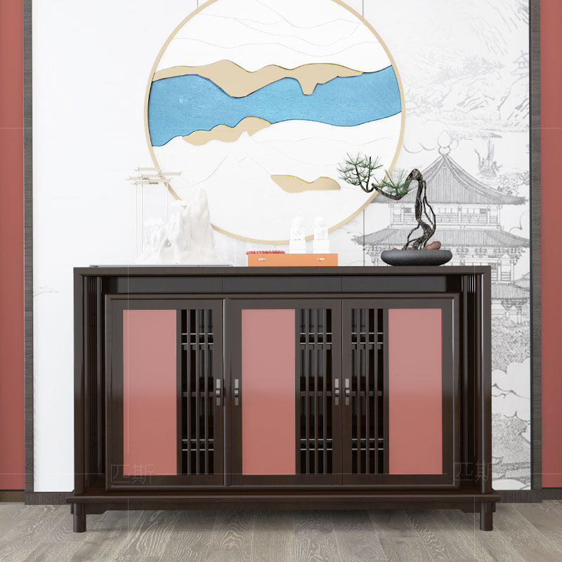New Chinese style solid wood entrance cabinet entry shoe cabinet modern minimalist living room compartment cabinet light luxury end view decorative cabinet