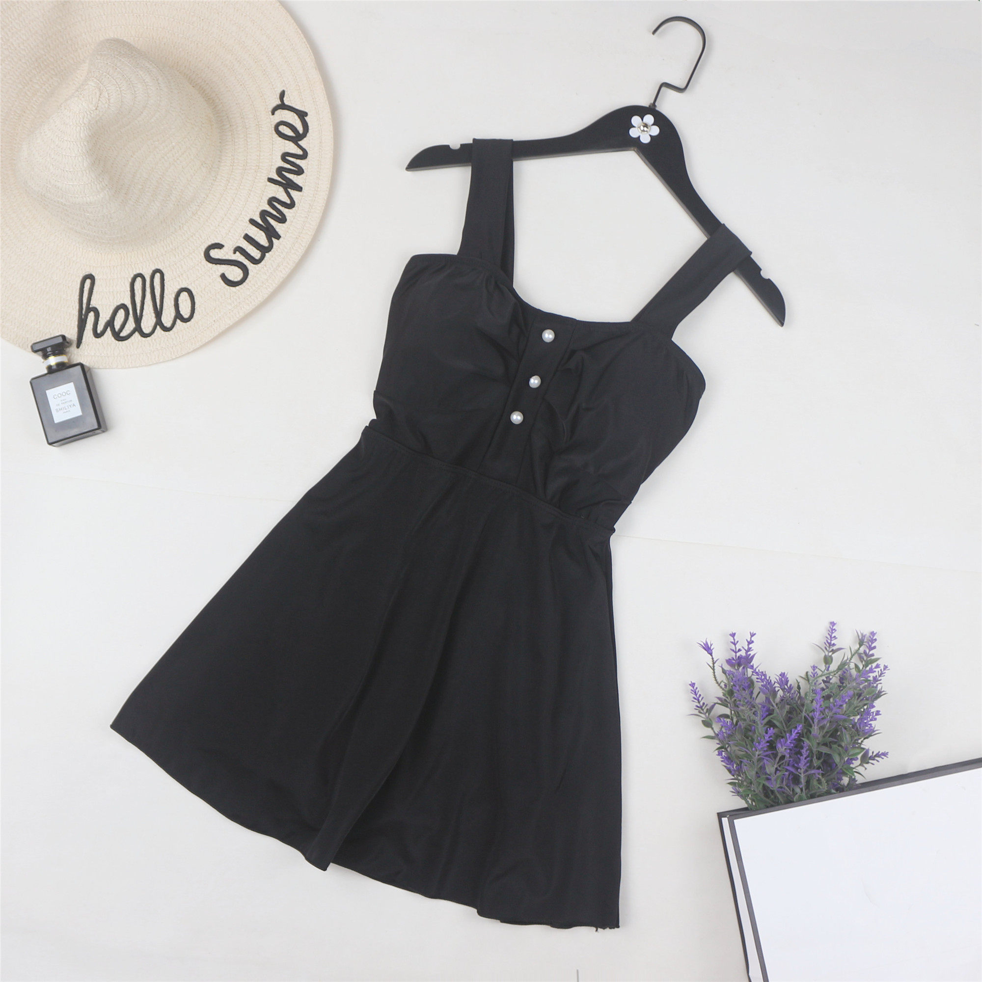 Skirt-style even for a swimsuit in a dress.