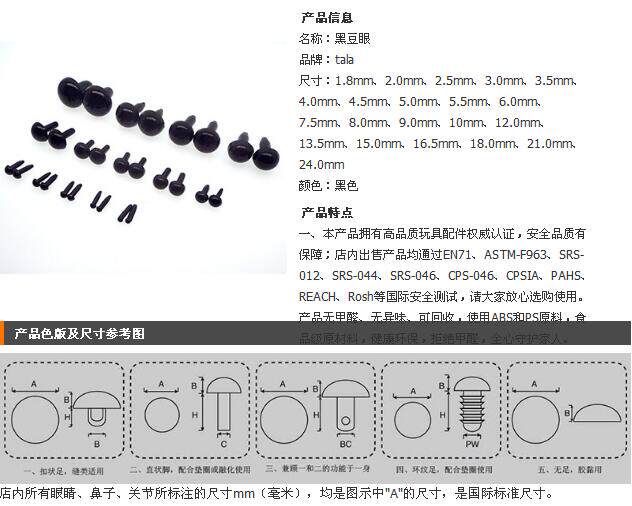 Doll doll plastic eye accessories small black bean eye thread eye cloth doll diy accessories
