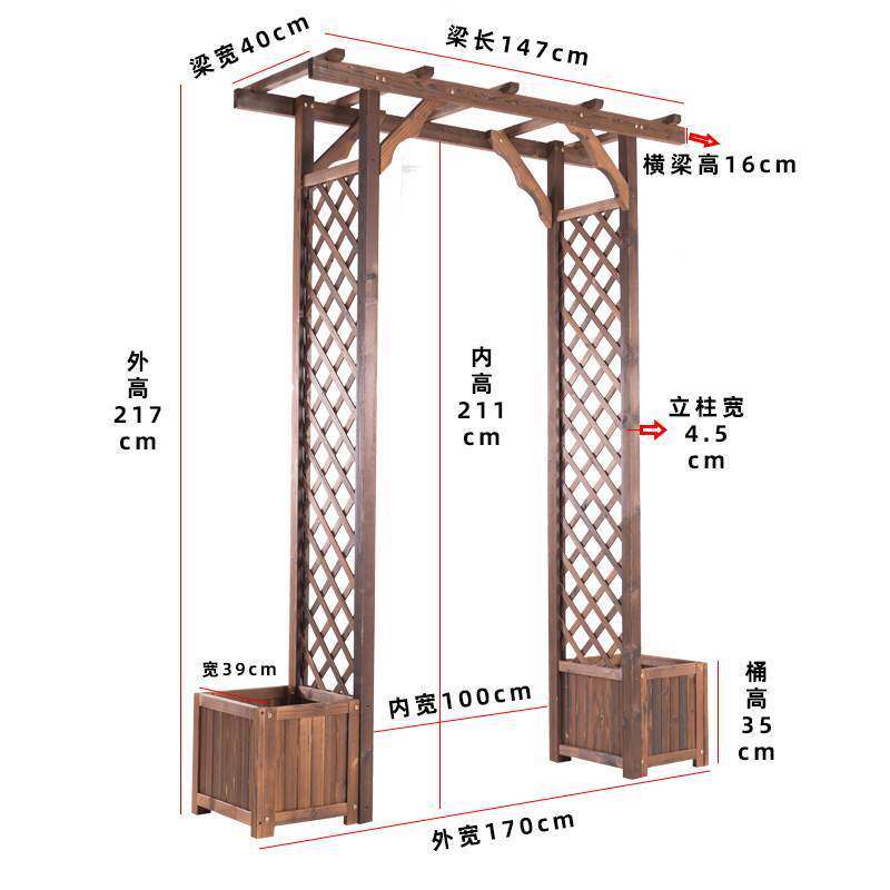Arched flower rack climbing rattan rack outdoor courtyard balcony grape rack arched outdoor carbonized anti-corrosion wooden fence door