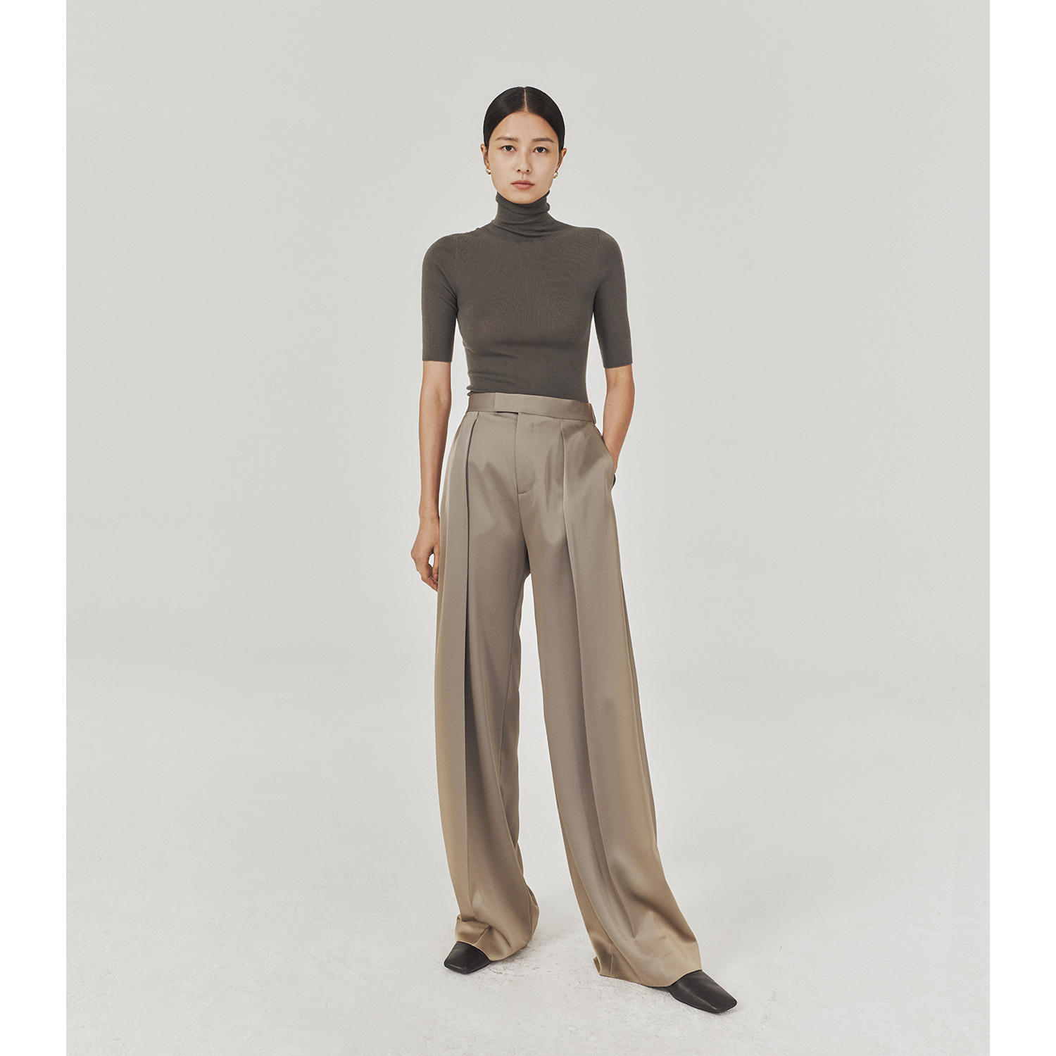 CHICJOC Japan imported heavy glossy double-sided satin triacetic acid thin waist draping feel 9 points mop pants