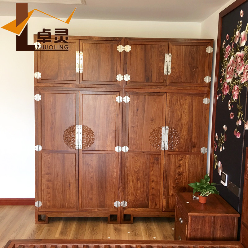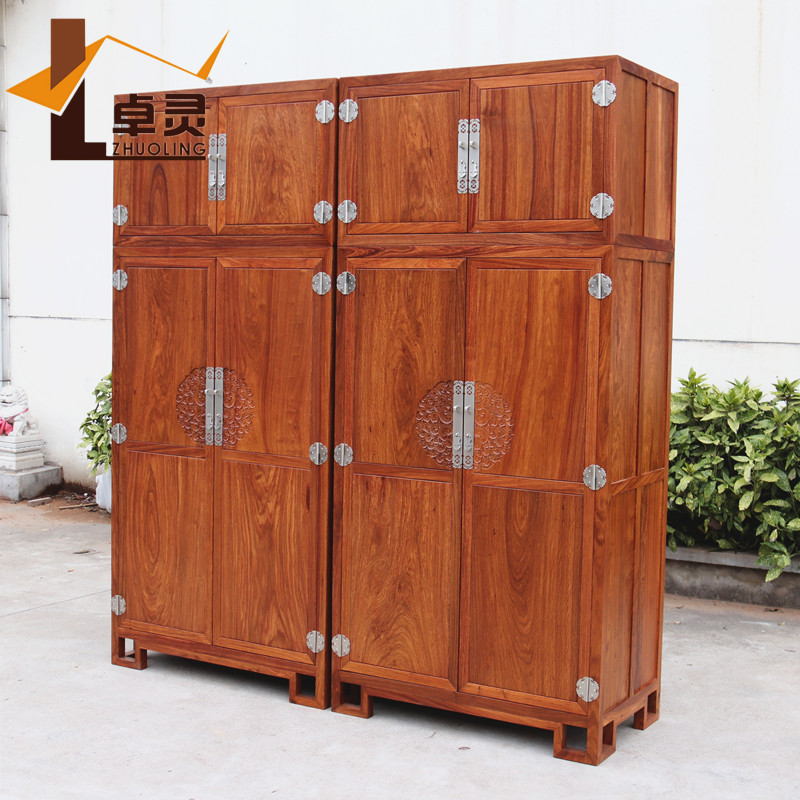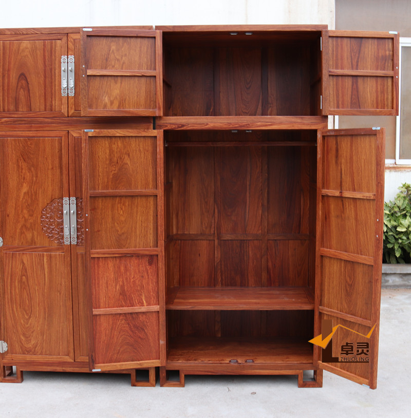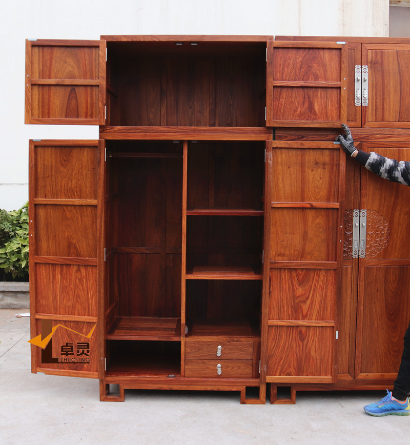 Simple new Chinese style hedgehog red sandalwood mahogany top box wardrobe bedroom large wardrobe Suhuali wood four-door wardrobe customization