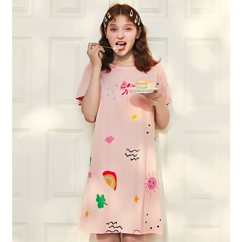 Fenteng new sleeping dress female spring and summer thin section large size pure cotton short sleeve sexy tennis red full cotton summer home Sleeping Clothes