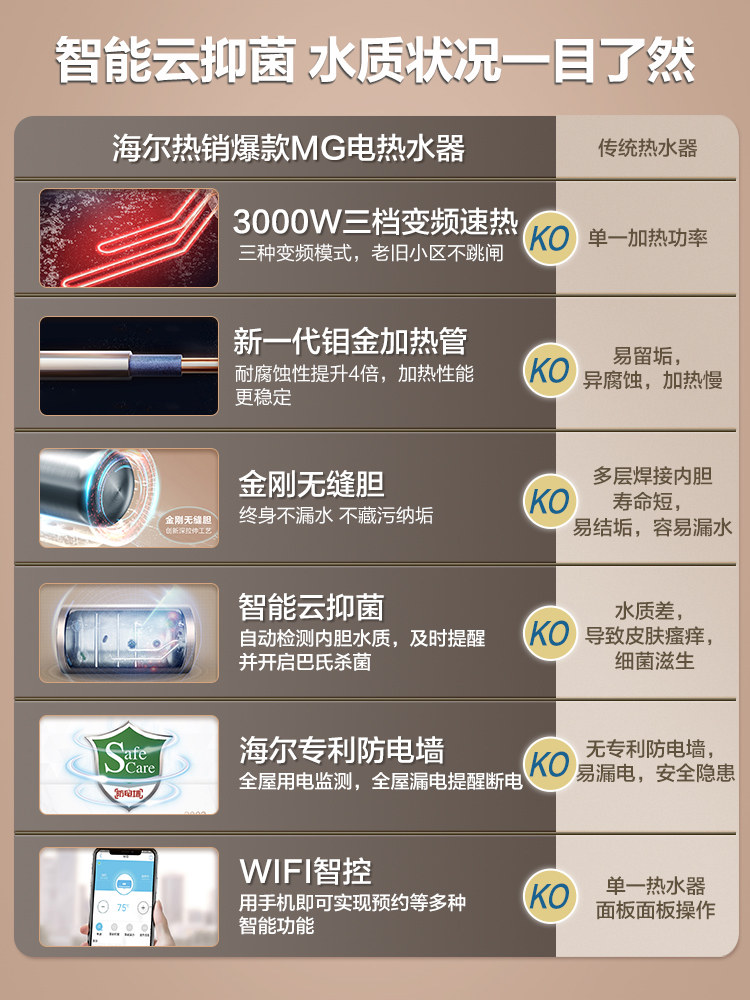 Haier Haier EC6002-MG(U1) Water Heater Electric Household 60-litre Hot Cosmetic Room Water Storage and Washing