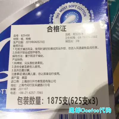 US imported Q-TIPS COTTON SWABS paper shaft COTTON swab COTTON swab Shanghai Costco market customers