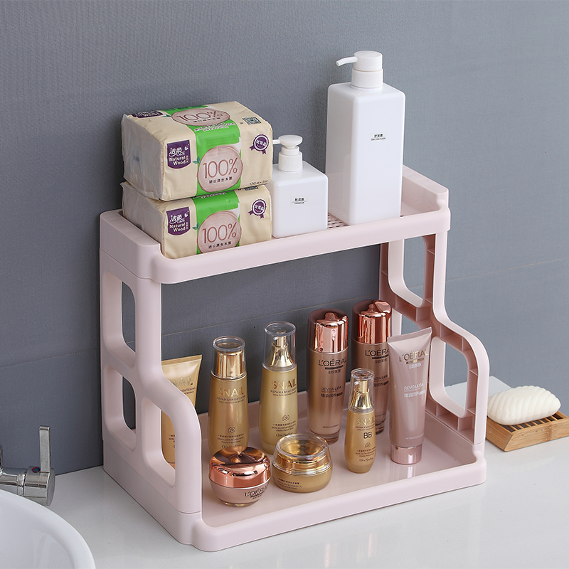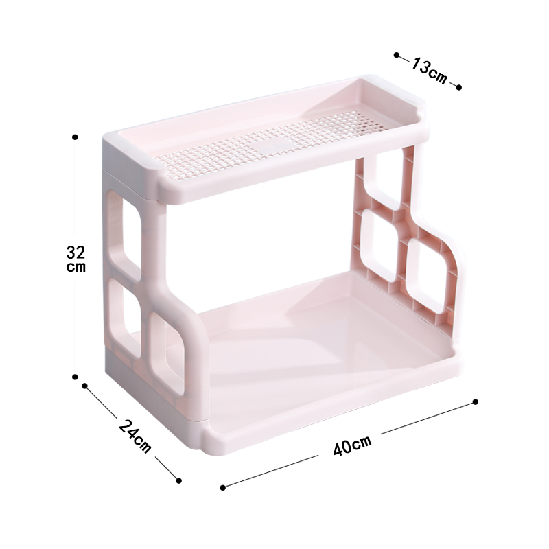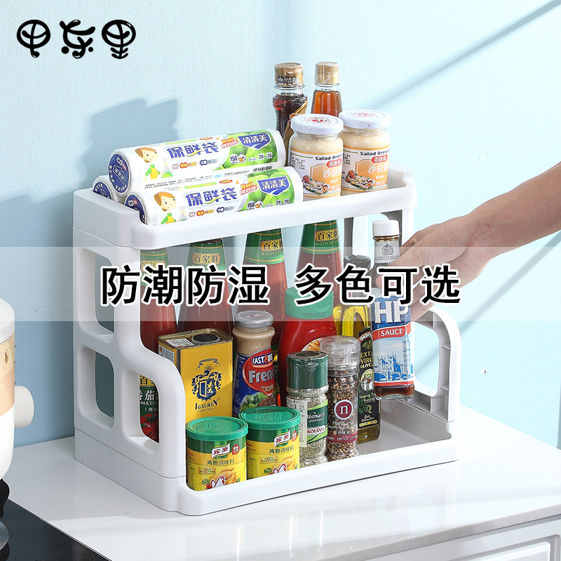 Kitchen shelf Seasoning rack Oil, salt, sauce and vinegar shelf Floor-to-ceiling double-layer countertop Household plastic storage shelf