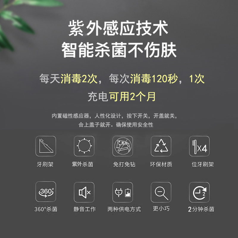 Ultraviolet electric toothbrush sterilizer household suction wall-mounted storage box sterilization rack tooth holder free punch