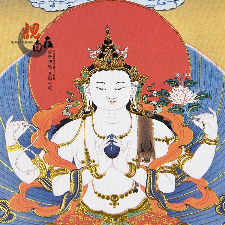 Thangka four-armed Guanyin ethnic style printing gilded portrait home entrance Thangka hanging painting decorative painting large
