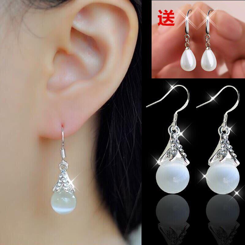 Korean Version Cat Eye Stone Earrings Female Fashion Temperament 100 Hitch-style Temperament Drop Earrings Ornament
