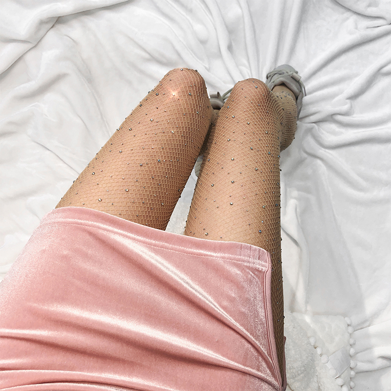Glitter sexy artifact European and American nightclub bright diamond skin tone bungee fishing net stockings beautiful legs appear thin hot diamond tights