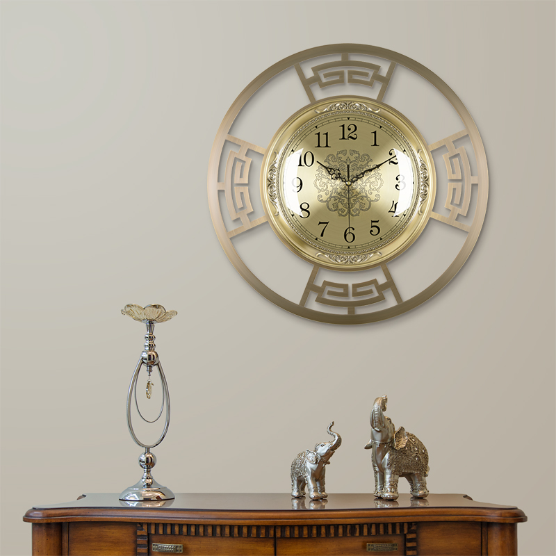 Metal large wall clock living room home clock fashion new Chinese light luxury decorative clock simple wall watch round clock hanging