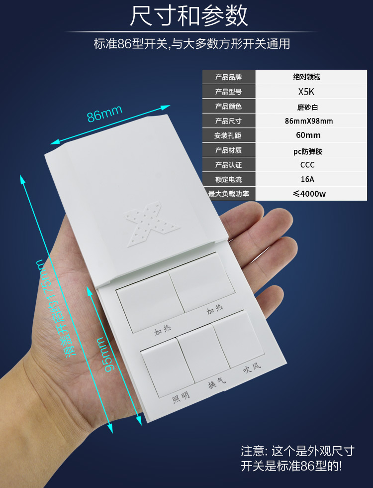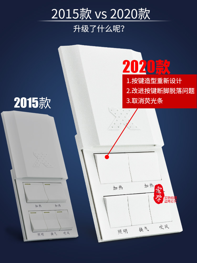 Linkage five-open bath master switch Air heating universal 5-open button slide cover bathroom heater switch