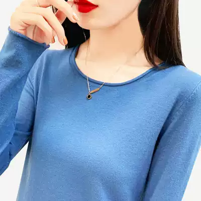 Spring and autumn thin sweater women's round neck slim slim loose long sleeve short Korean pullover knitted base shirt large size