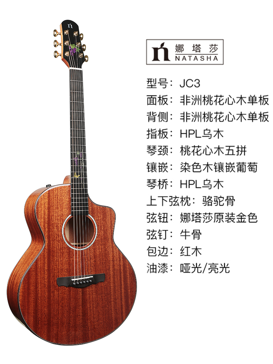 natasha Natasha JC1 JC2 JC4 JC3 001 OM4 handmade full veneer folk electric box wooden guitar
