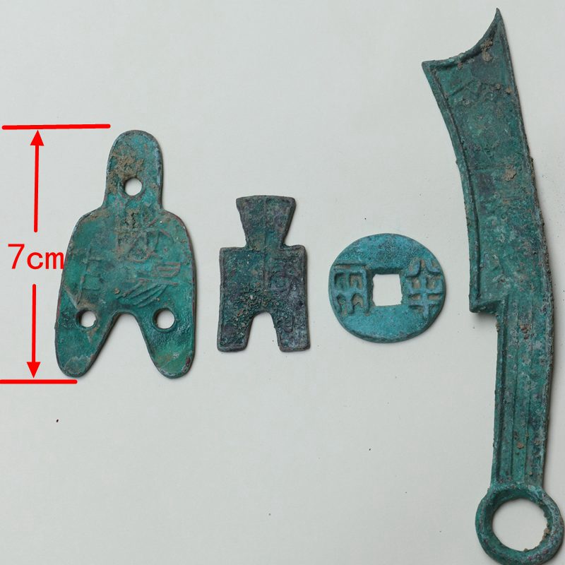 Pre-Qin ancient coins, bronze coins, knife coins, half two cloth coins, warring States, seven males, seven coins, seven bronze coins, a set of bronze coins.