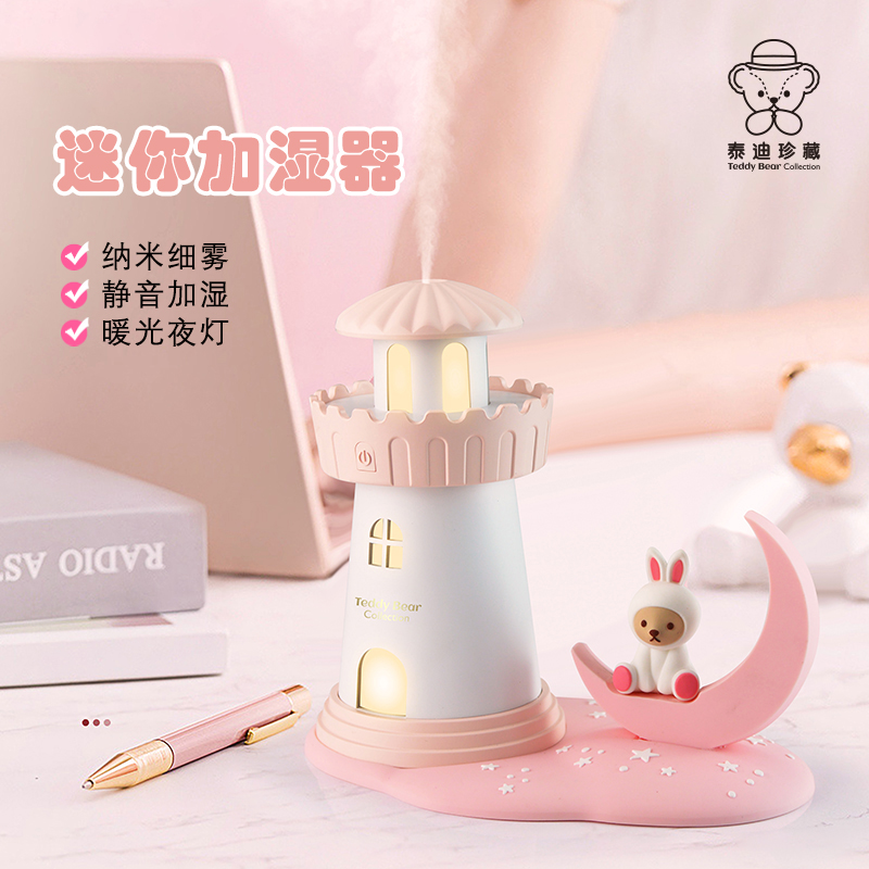 Teddy Usb Humidifiers Small Office Air Purifying Home Silent Tabletop Bedside Scented Lavender Bedrooms Spray Moisturizing Dorm Room Student Room Light Essential Oils Mini Creative Nightlight