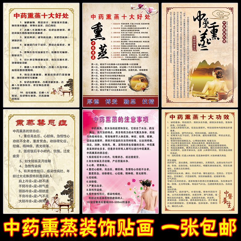 Traditional Chinese Medicine Wellness Museum Traditional Chinese Medicine Fumigation Picture Poster for Herbal Medicine Fumigation Painting Platoon Cold And Wet Benefits Efficacy Physiotherapy Advertising Sticker