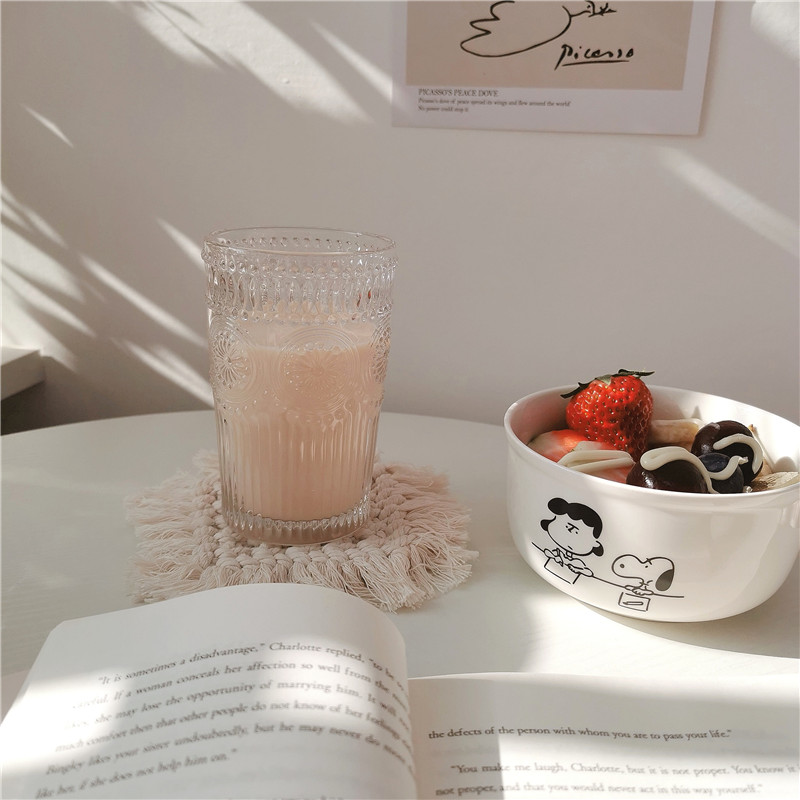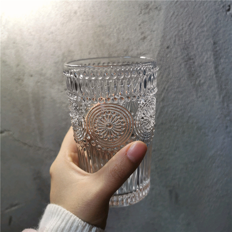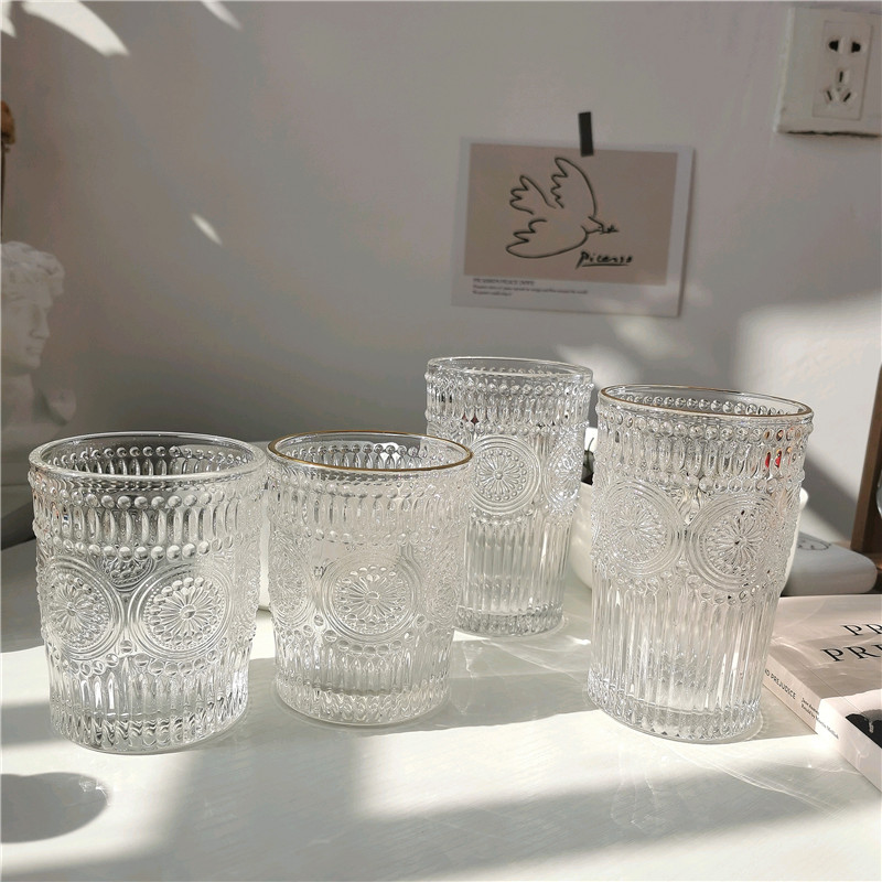 *Pretty Little Aunt * ins South Korean glass-glass-style retro-relief transparent glass goblet with glass of milk