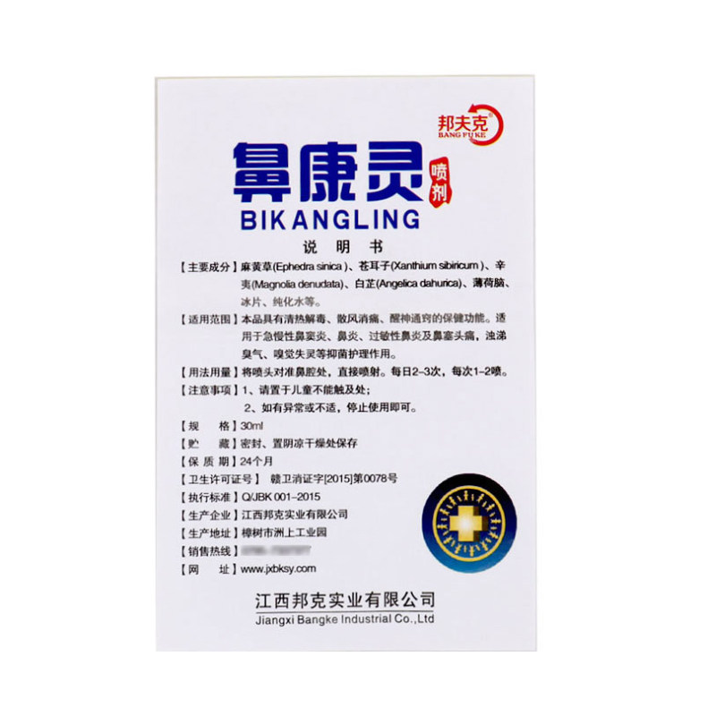 Bangfu Kebi Kangling rhinitis spray allergic nasal congestion nasal itching nasal antibacterial agent artifact sinusitis 30ml
