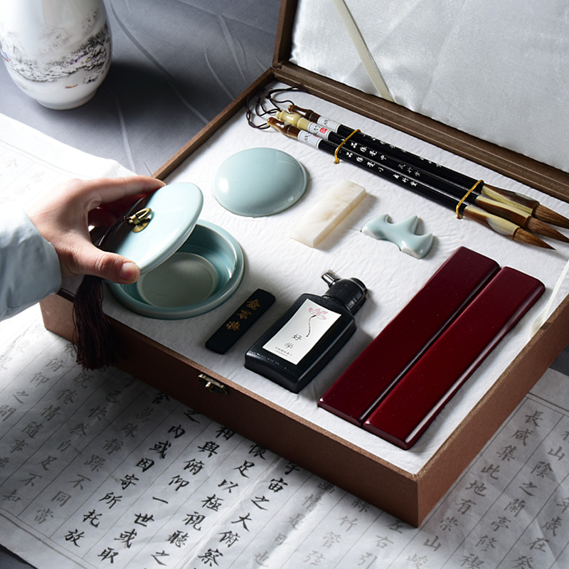Writing brush suit upscale professional full set of pen ink paper ink-stone ink-stone ink-stone, calligraphy supplies utensils creative gift box wolverine pen holder writing brush holder calligraphy and writing town ruler ink-style room Four-treasure boutique suit upscale-Taobao