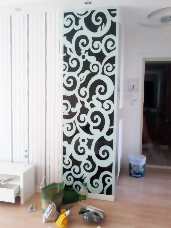 Manufacturers custom-made paint tempered non-film desktop TV dining room background wall back paint glass black background white flower European spin
